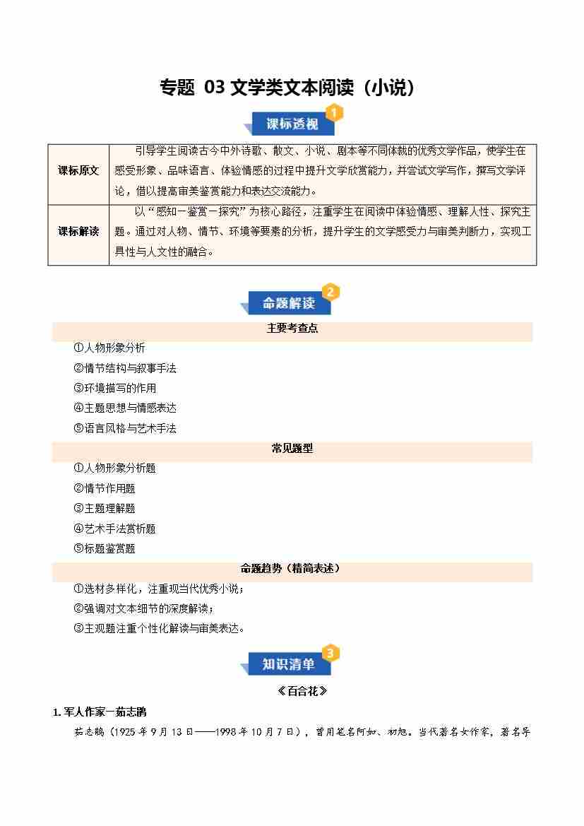 专题03 文学类文本阅读(小说)(期中复习讲义)(学生版)