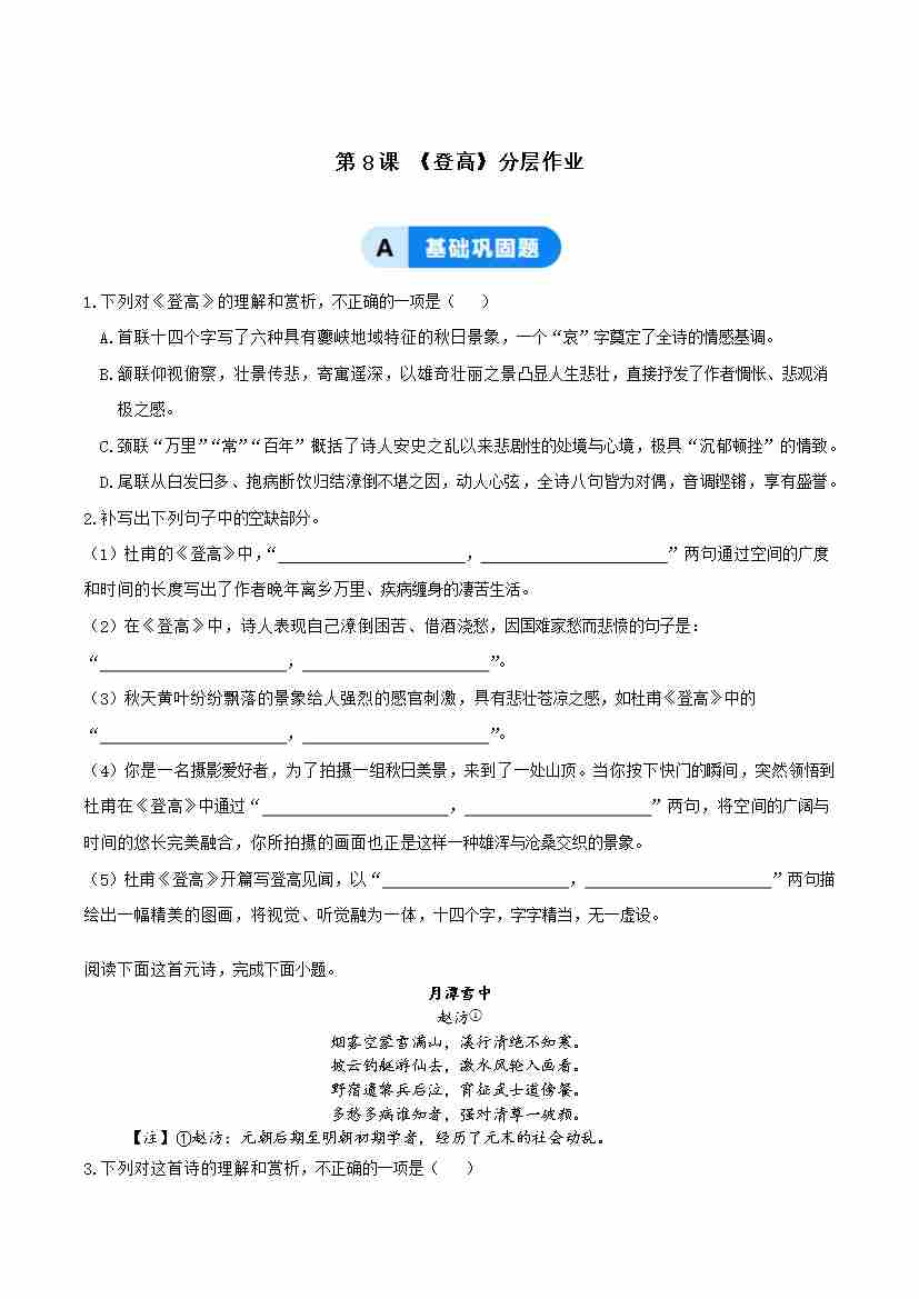 8-2 登高:秋江孤影里的生命重量(主题任务式分层作业)(原卷版)