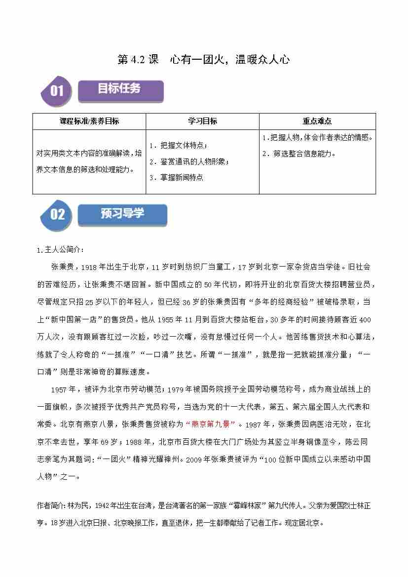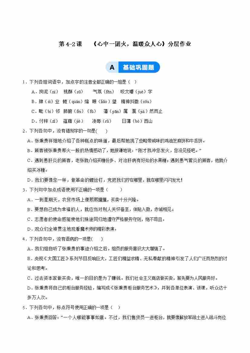 4-2 心中一团火,温暖众人心(主题任务式分层作业)(原卷版)