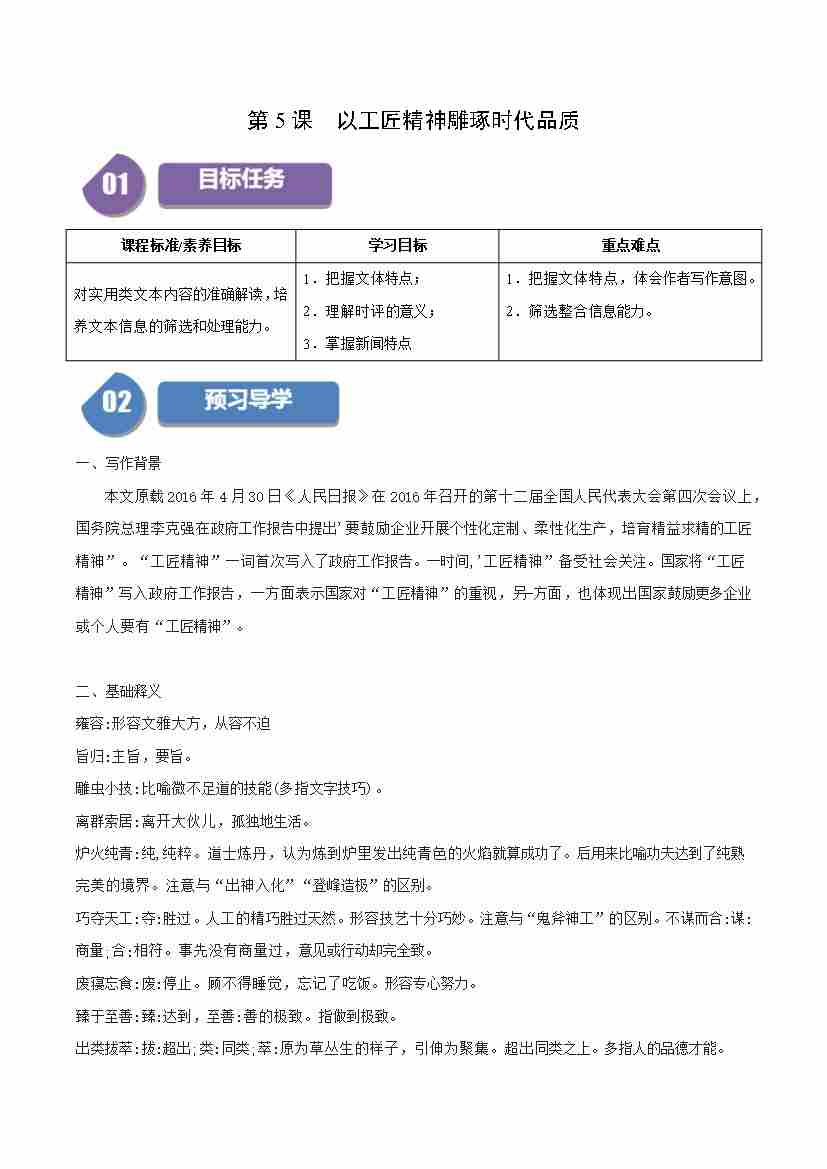 第5课 以工匠精神雕琢时代品质(学生版)