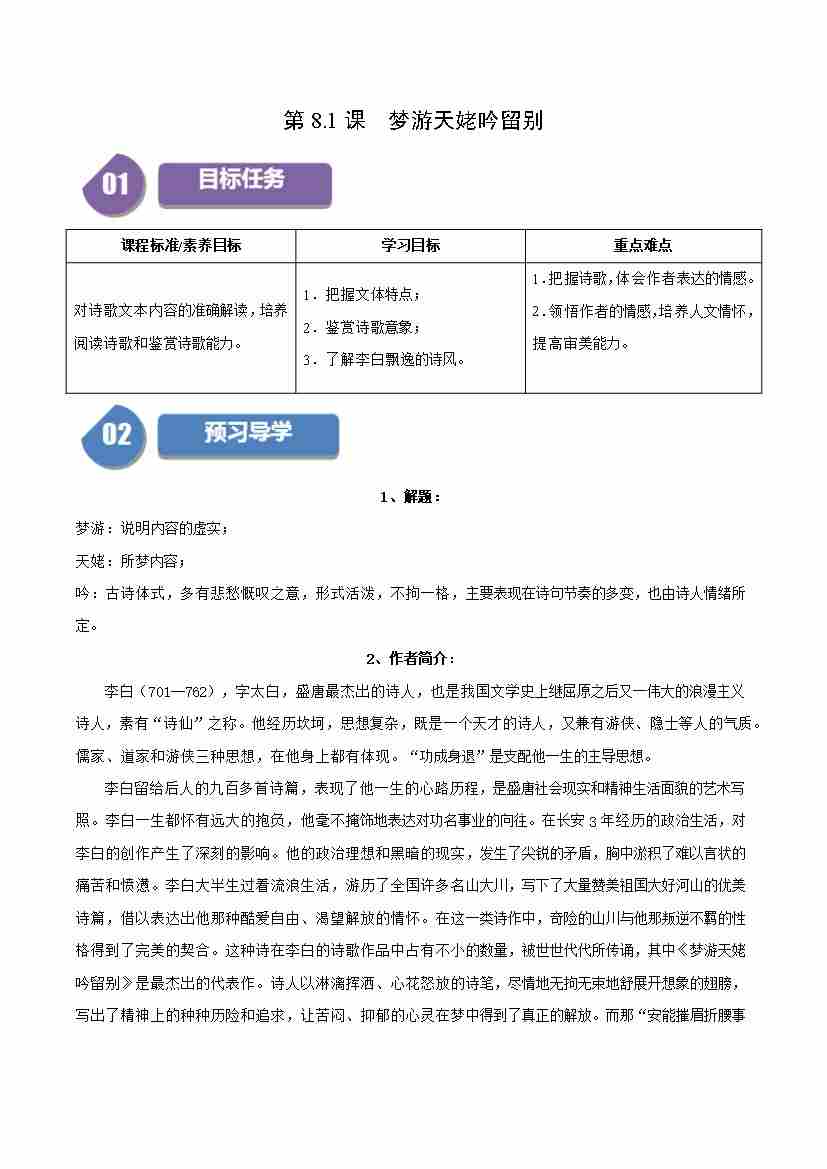 第8.1课 梦游天姥吟留别(学生版)