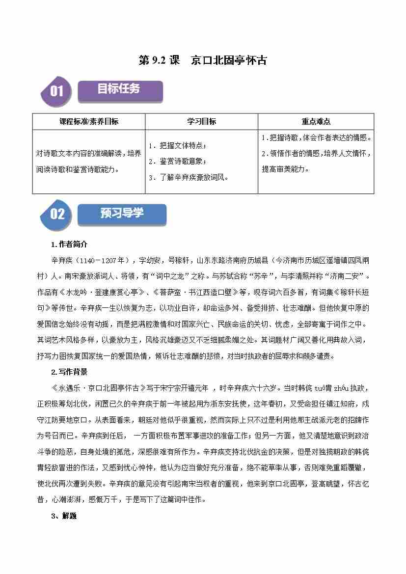 第9.2课 京口北固亭怀古(学生版)