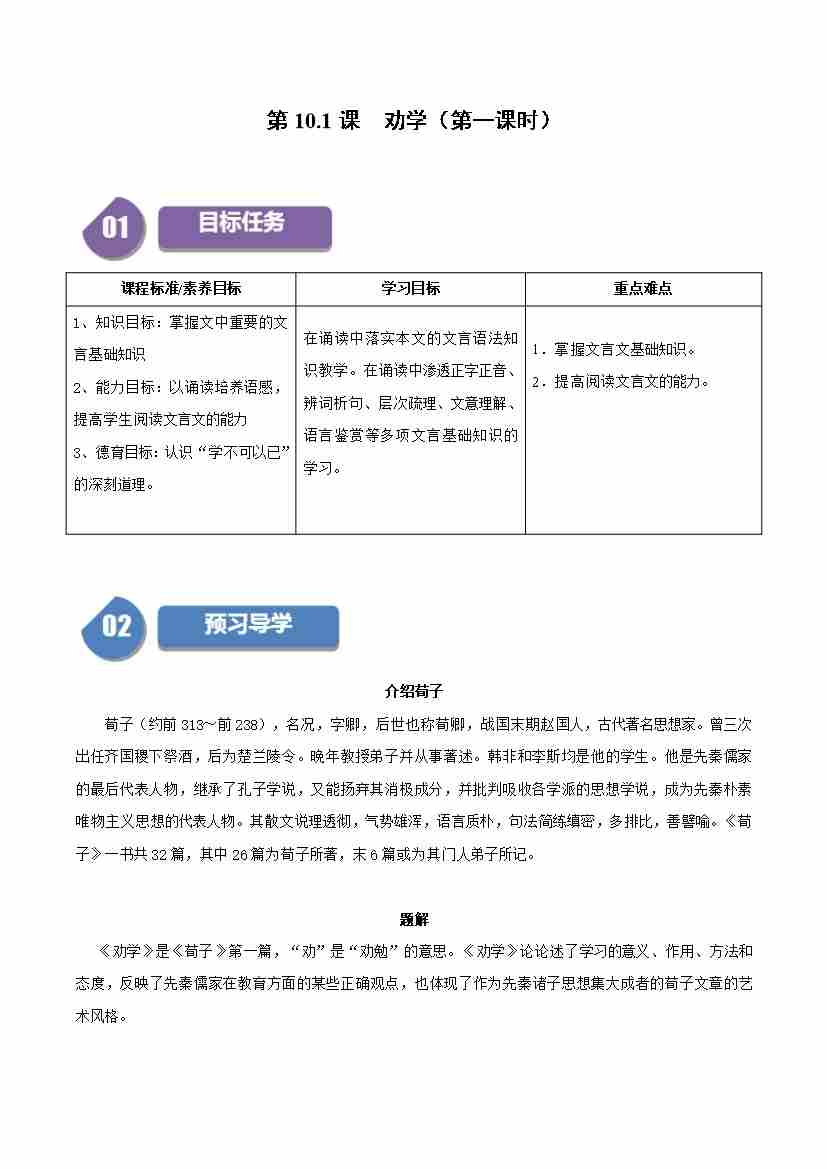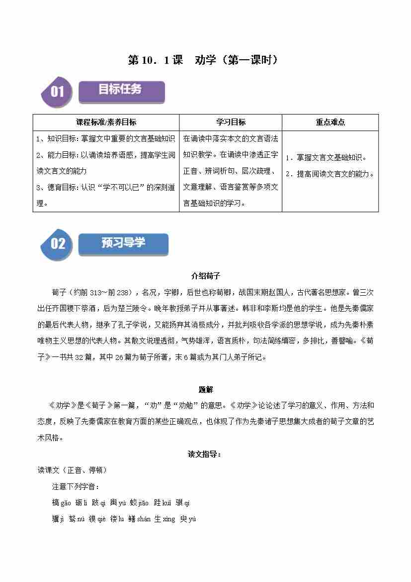 第10.1课 劝学(第一课时)(学生版)