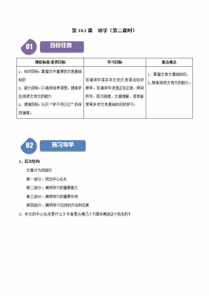 第10.1课 劝学(第二课时)(学生版)
