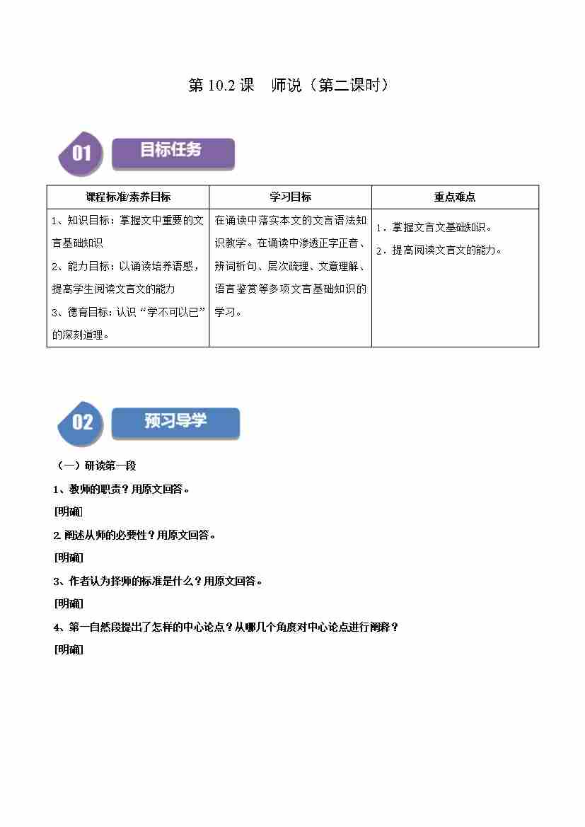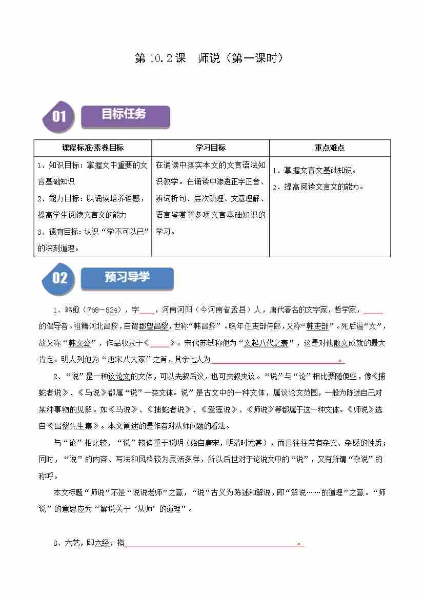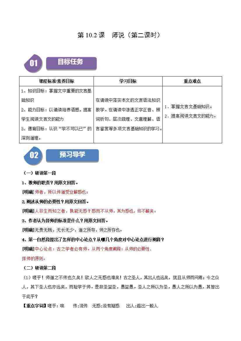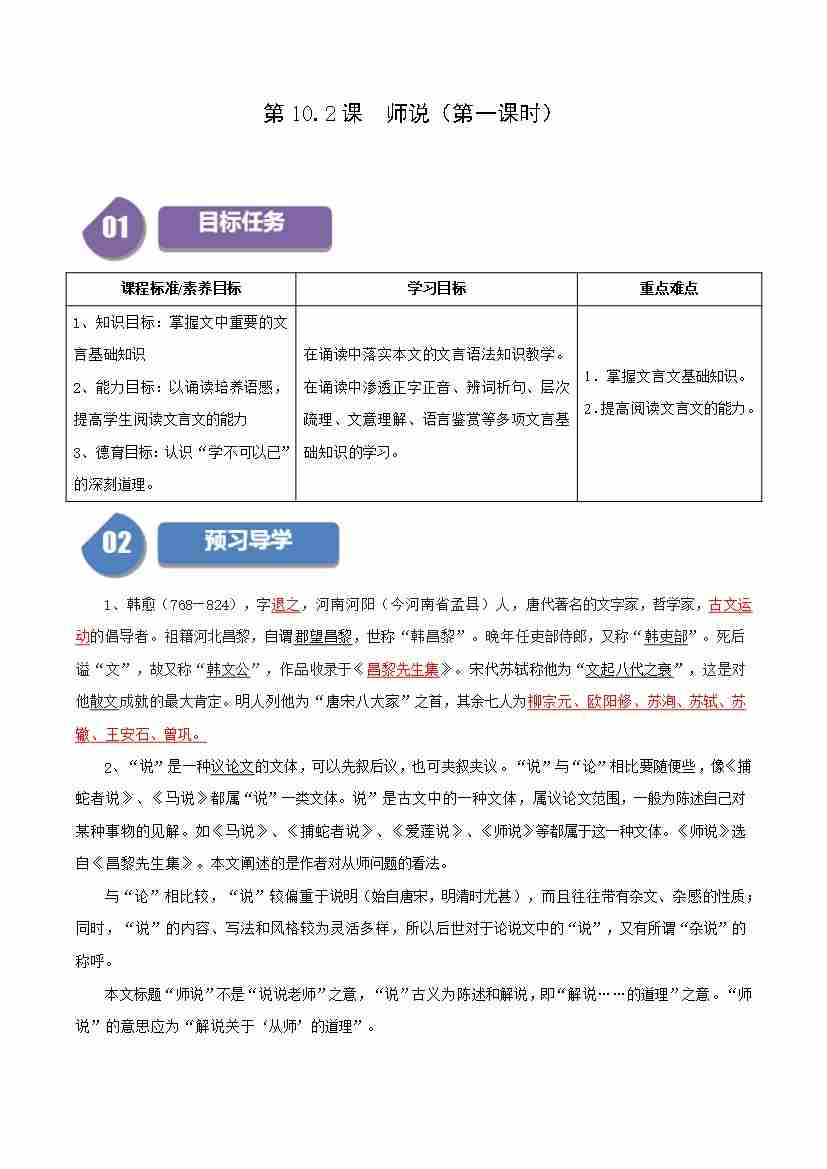 第10.2课 师说(第一课时)(学生版)