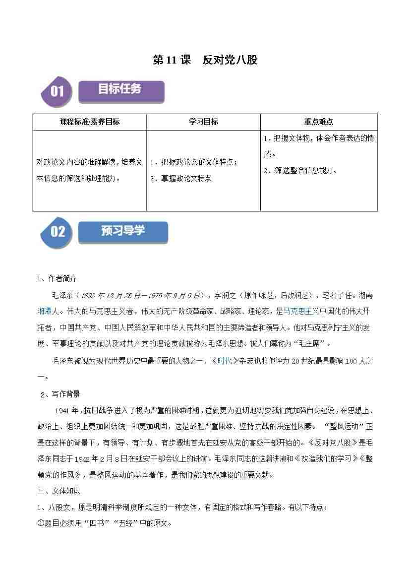第11课 反对党八股(学生版)