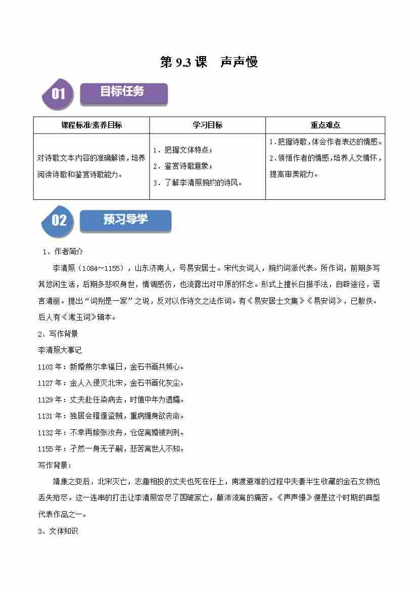 第9.3课 声声慢(学生版)
