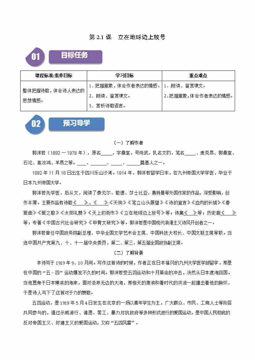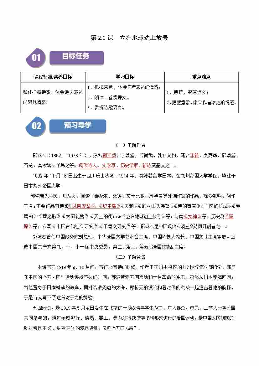 第一单元(A卷·知识通关卷)(统编版必修上册)学生版