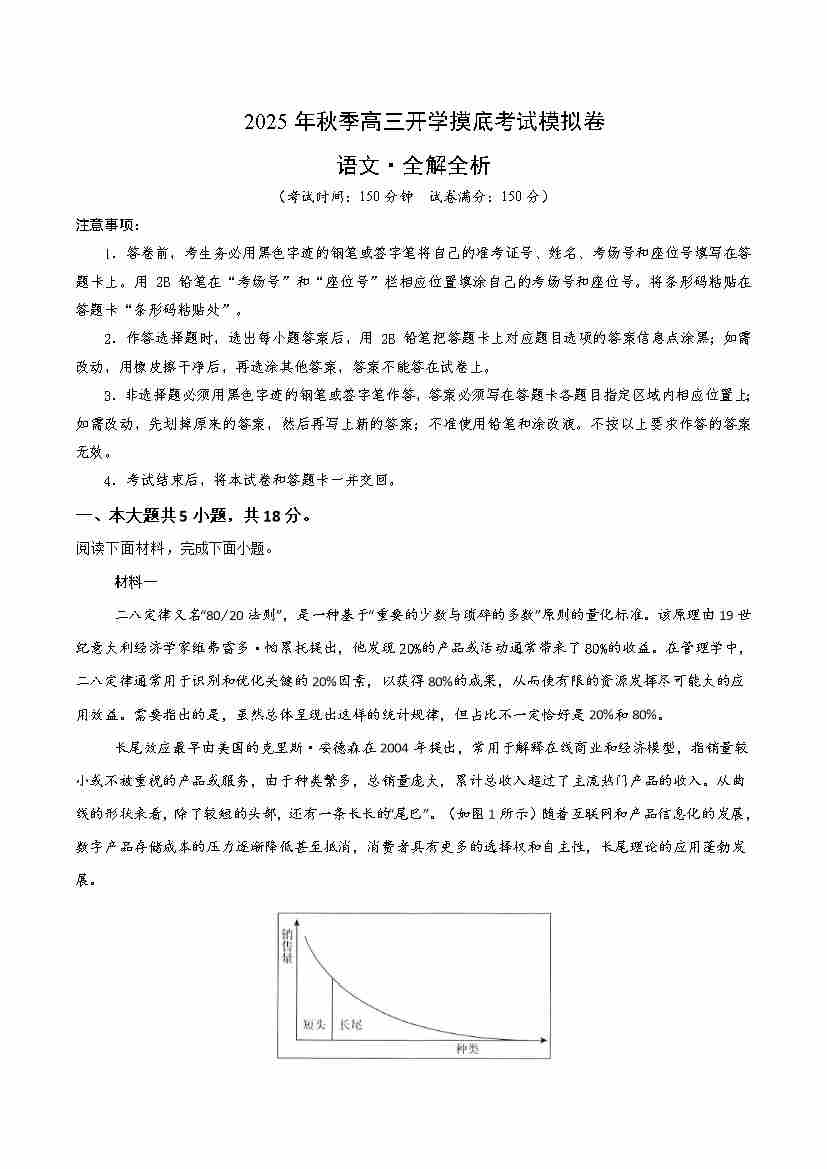 高三语文秋季开学考北京专用(考试版A4)