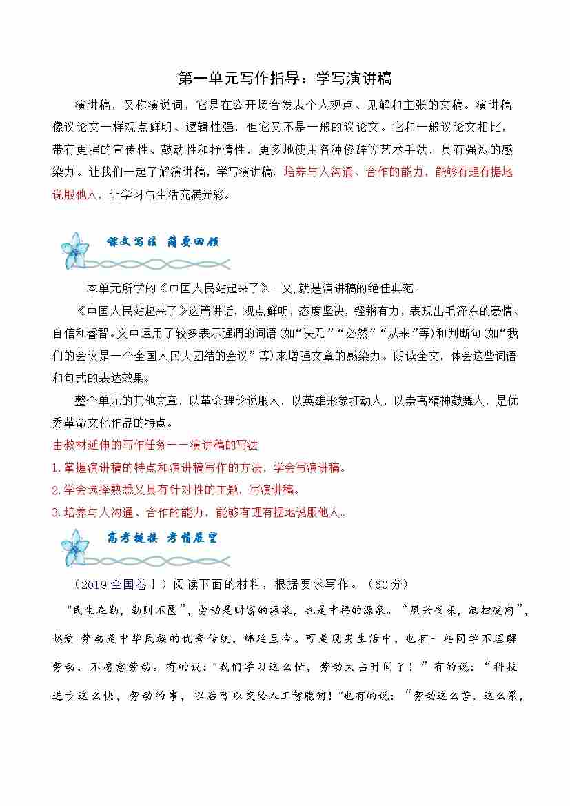 专题01:第一单元:学写演讲稿单元写作指导-(统编版选必上册)