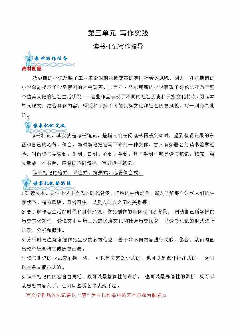 专题01:读书札记写作指导-(统编版选必上册)