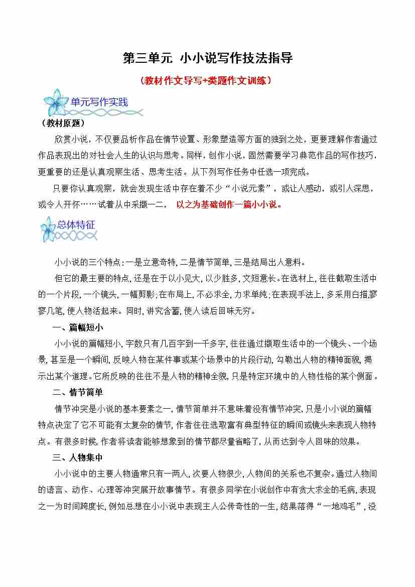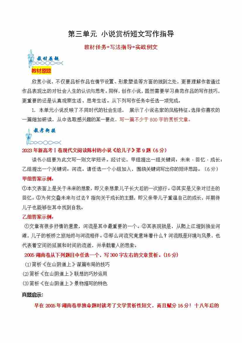 专题02:小说赏析短文写作指导-(统编版选必上册)
