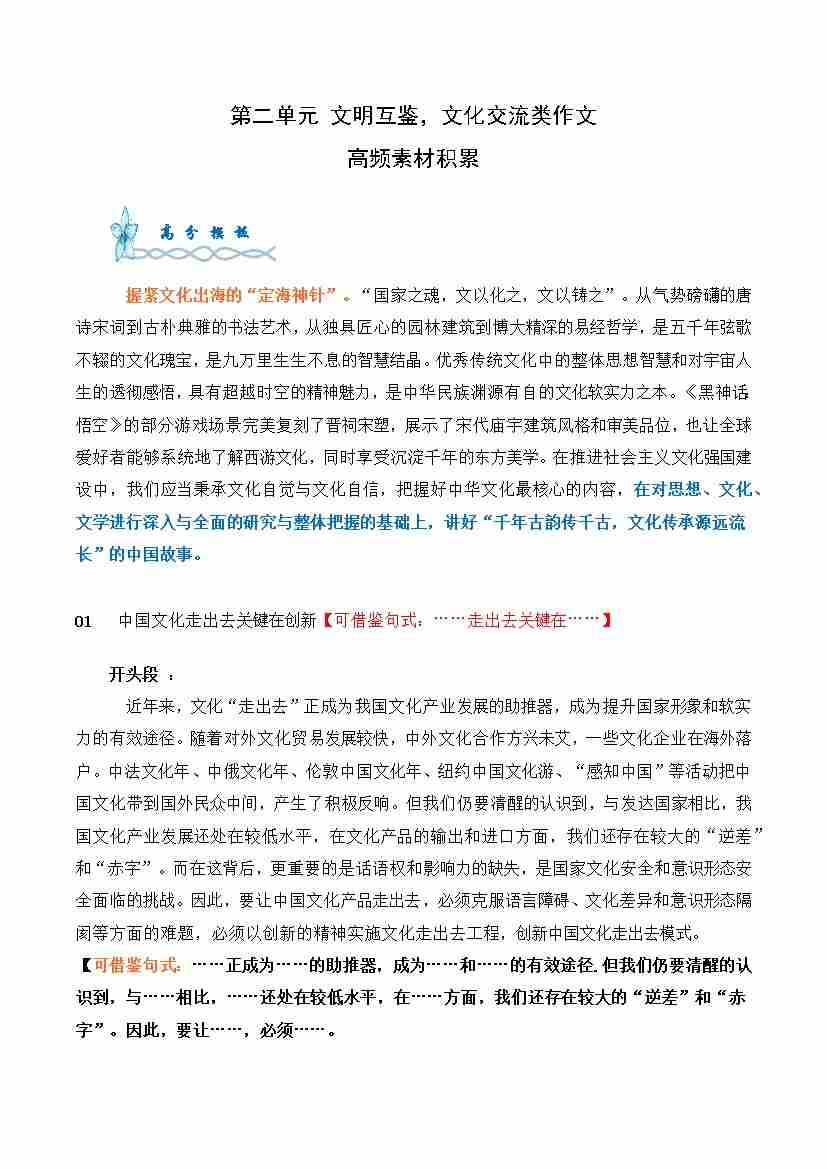 专题05:文明互鉴、文化交流高频素材积累-(统编版选必上册)