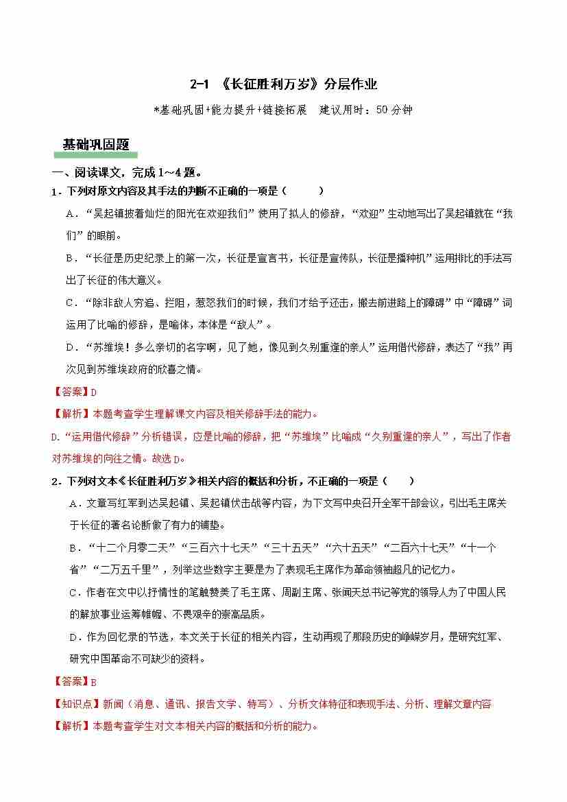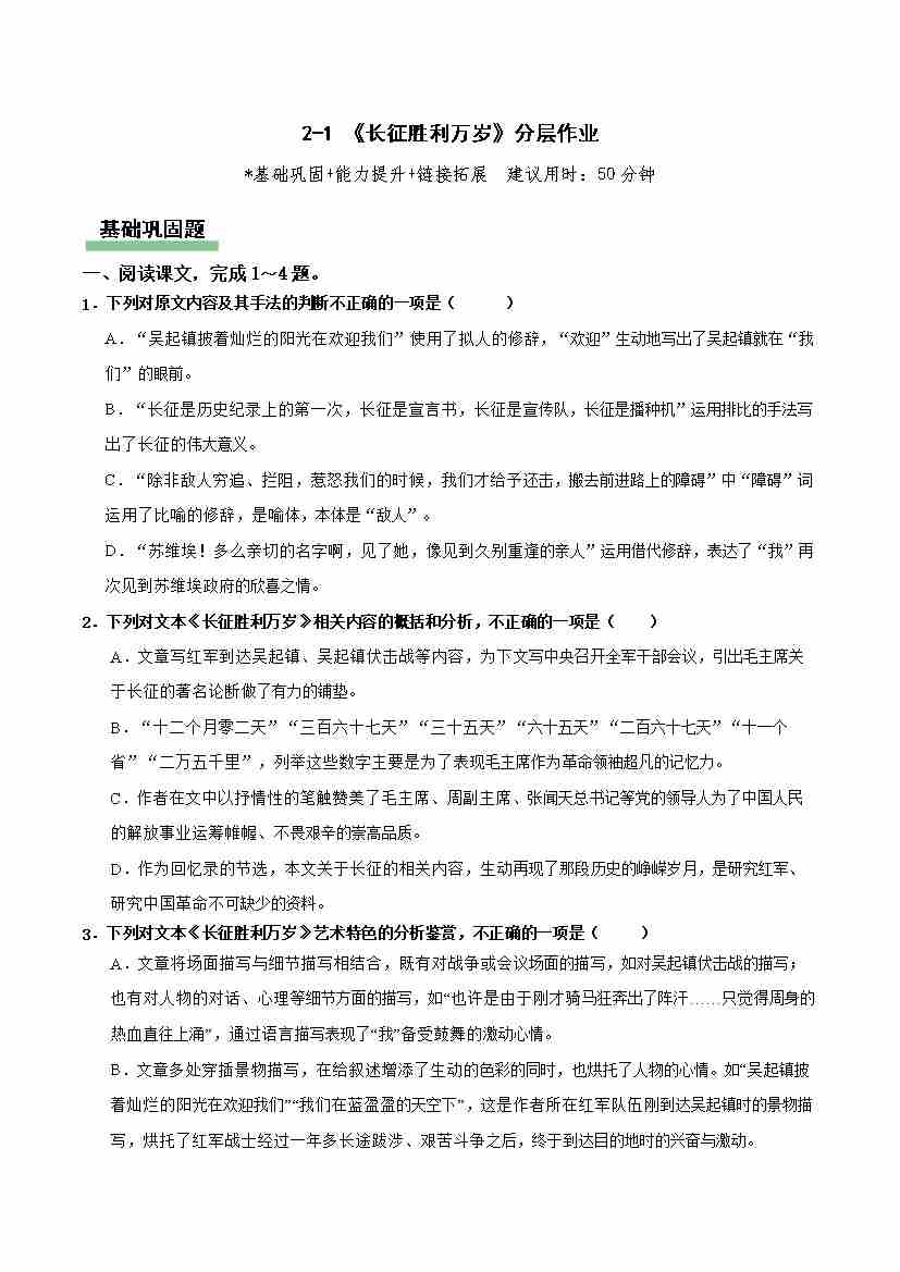 2-1 《长征胜利万岁》分层作业(原卷版)