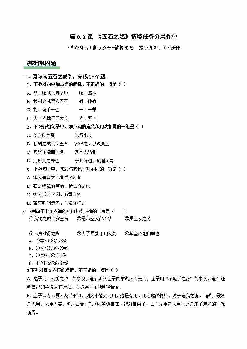 7 兼爱:从墨家理想走向现代实践(主题任务式分层作业)(解析版)