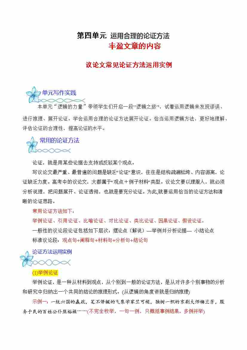 专题03:运用合理的论证方法丰盈文章的内容(议论文常见论证方法运用实例)-(统编版选必上册)