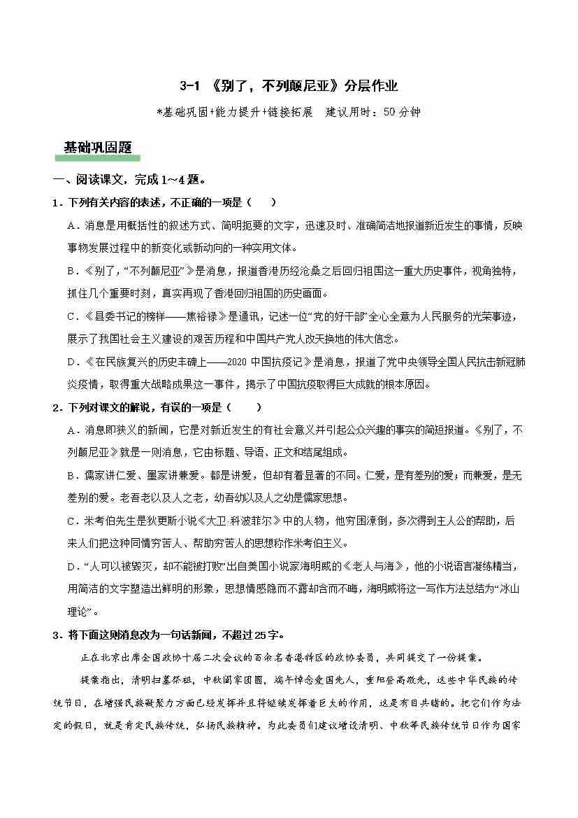 《大学之道》分层作业(解析版)