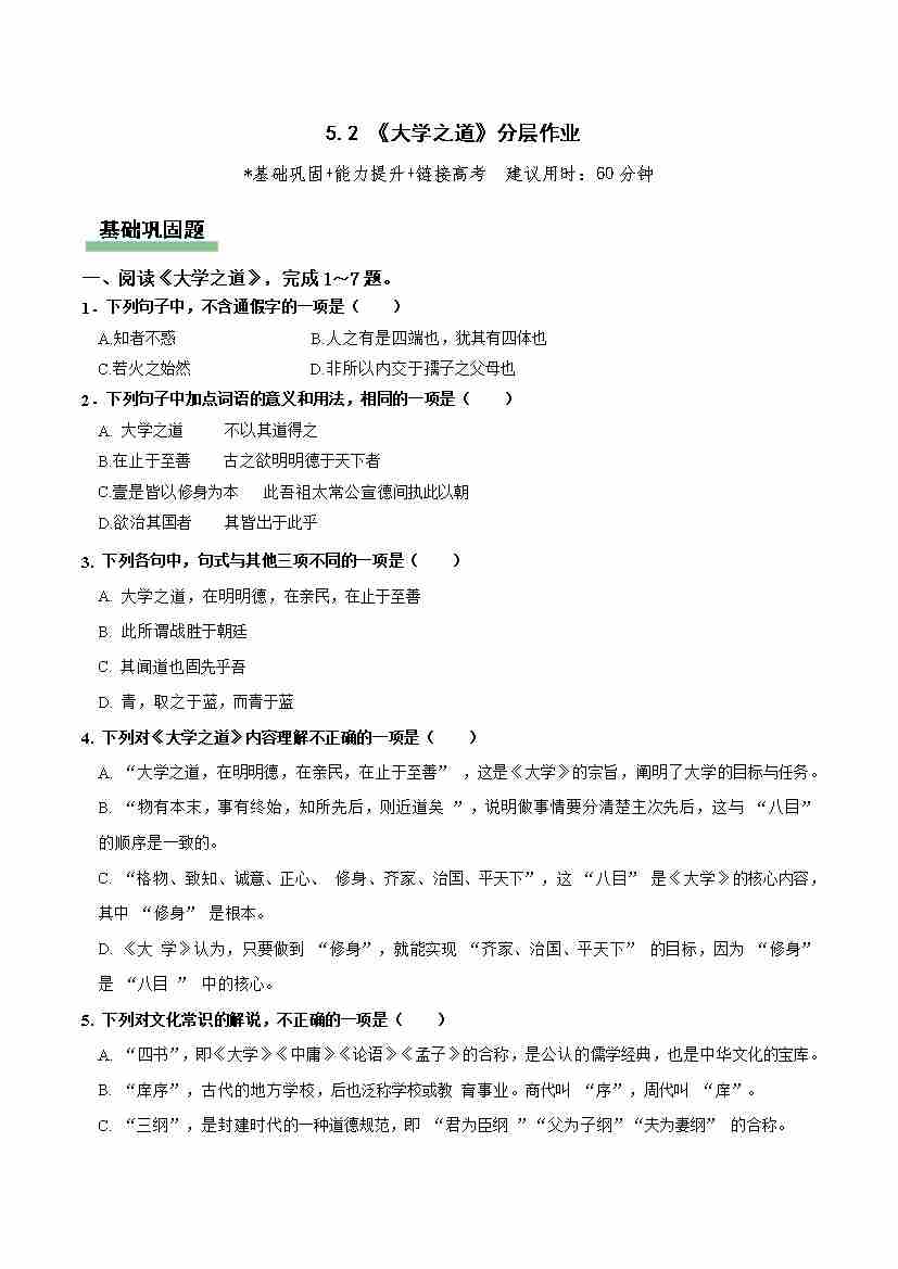 《大学之道》分层作业(原卷版)