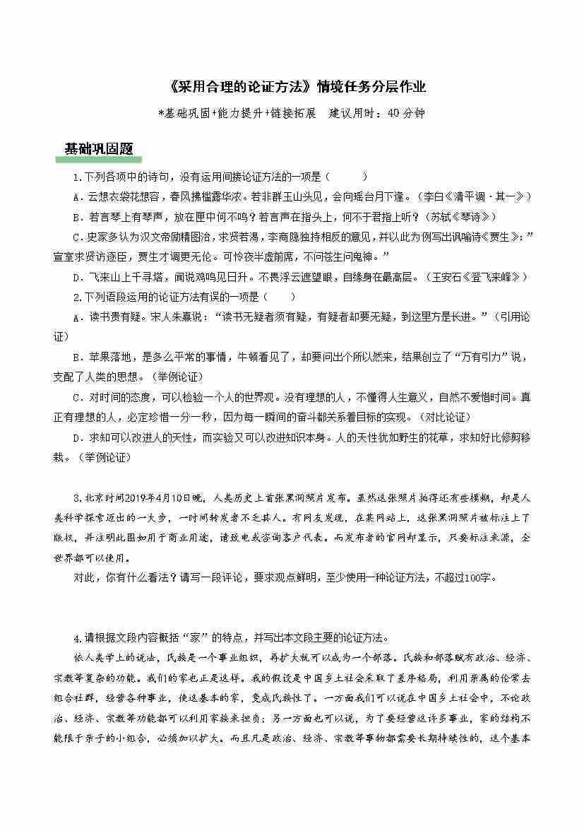 《采用合理的论证方法》(分层作业)(原卷版)