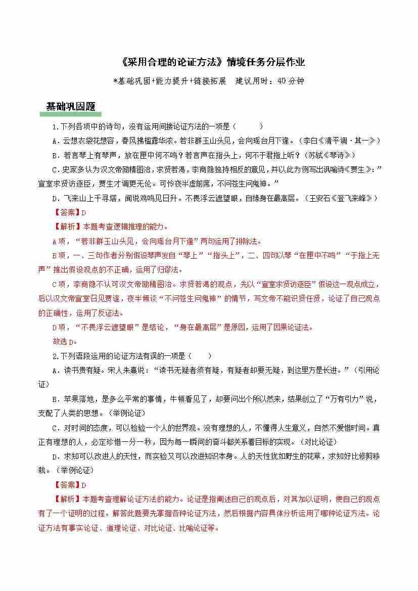 《采用合理的论证方法》(分层作业)(解析版)