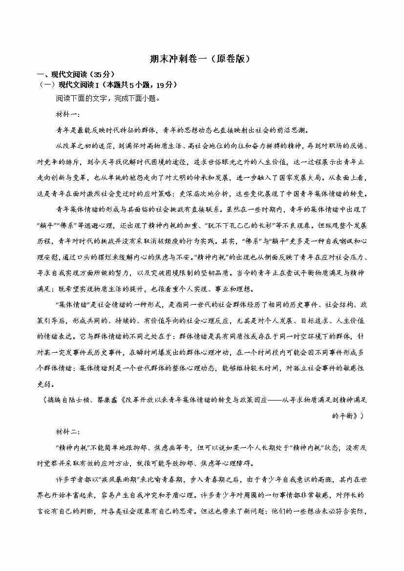 期末冲刺卷一(学生版)