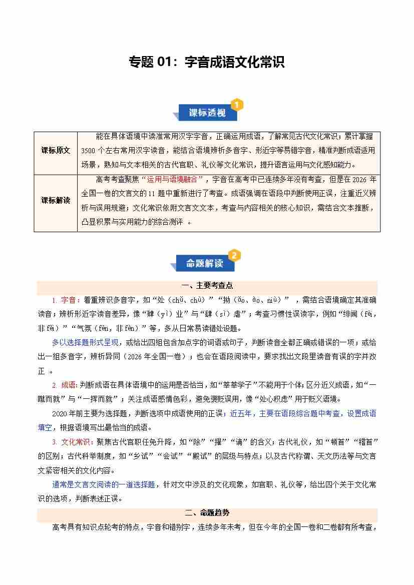 专题01 字音成语文化常识(期中知识清单)