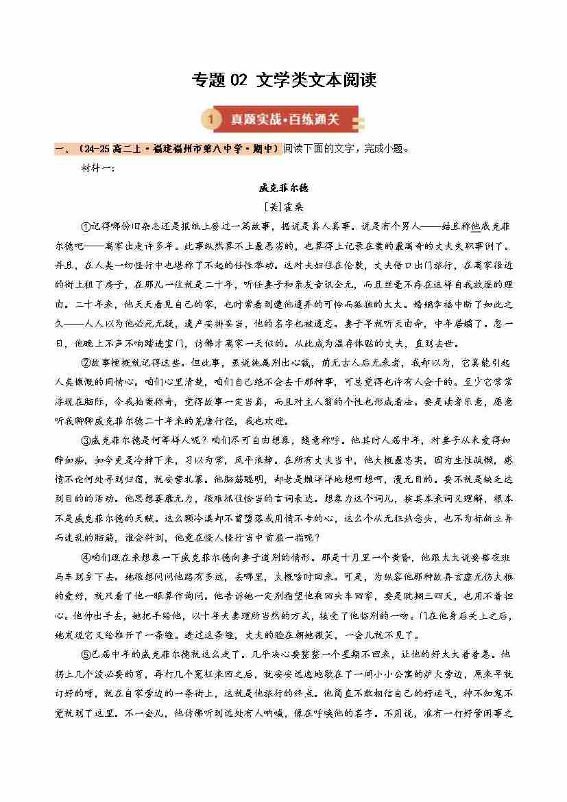 专题02 文学类文本阅读(期中专项训练)(学生版)