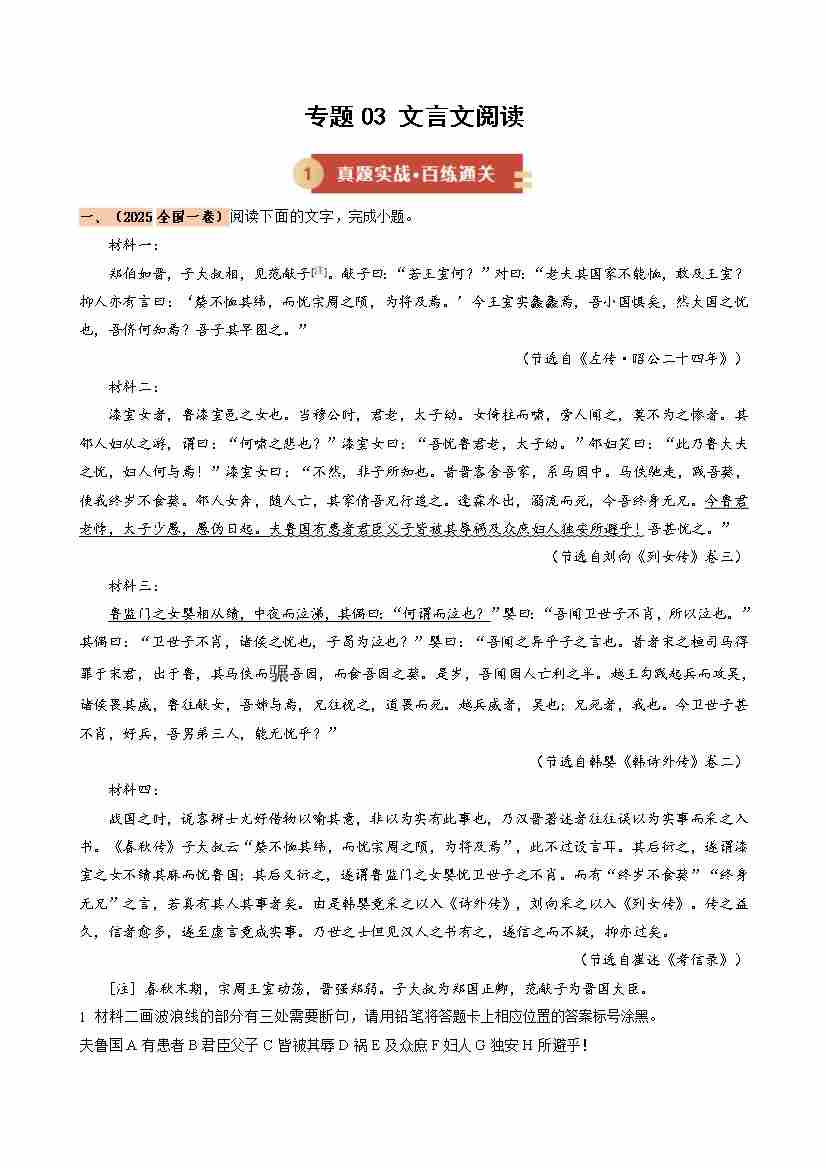 专题03 文言文阅读(期中专项训练)(学生版)