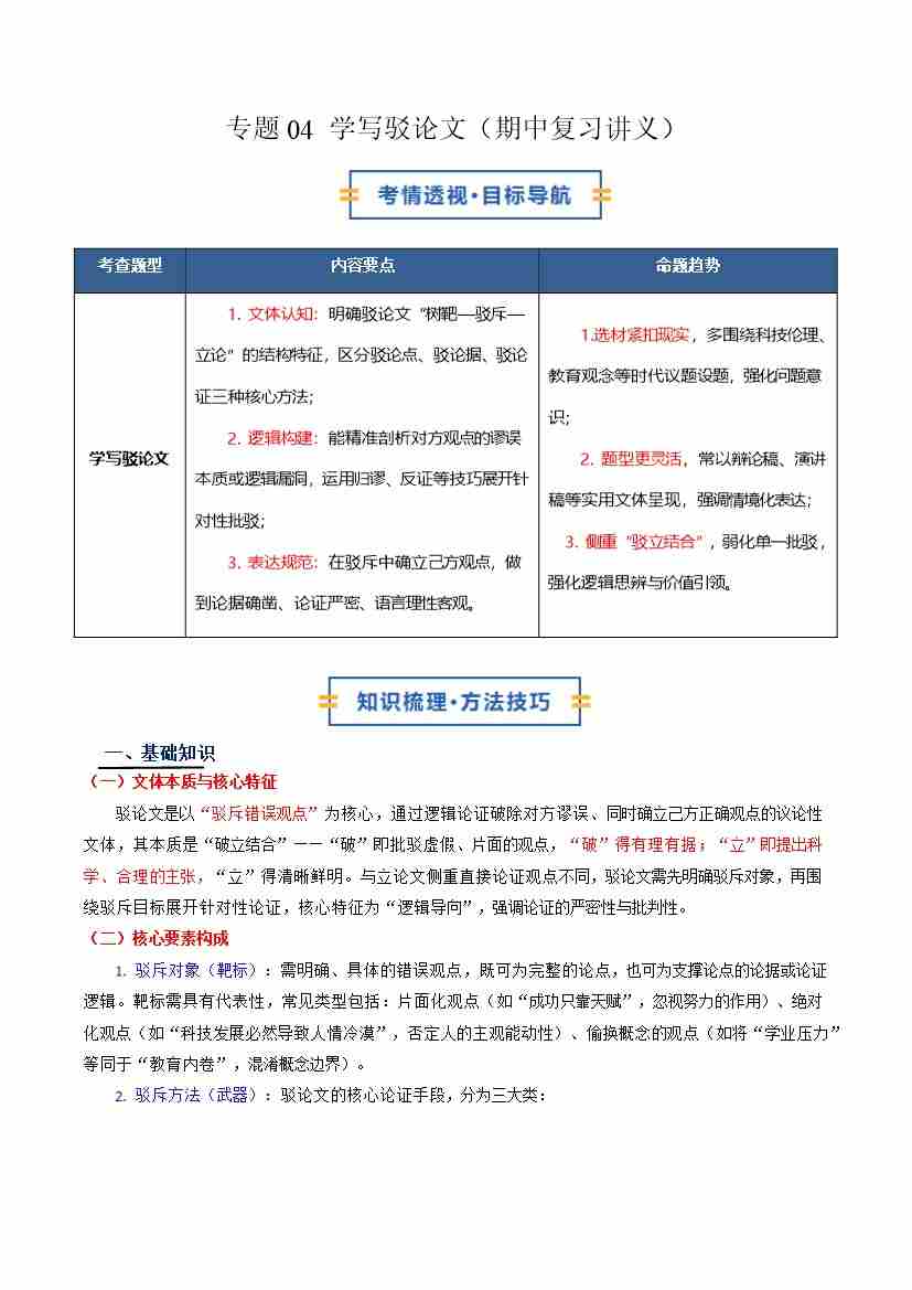 专题04 学写驳论文(作文)(期中复习讲义)(教师版)