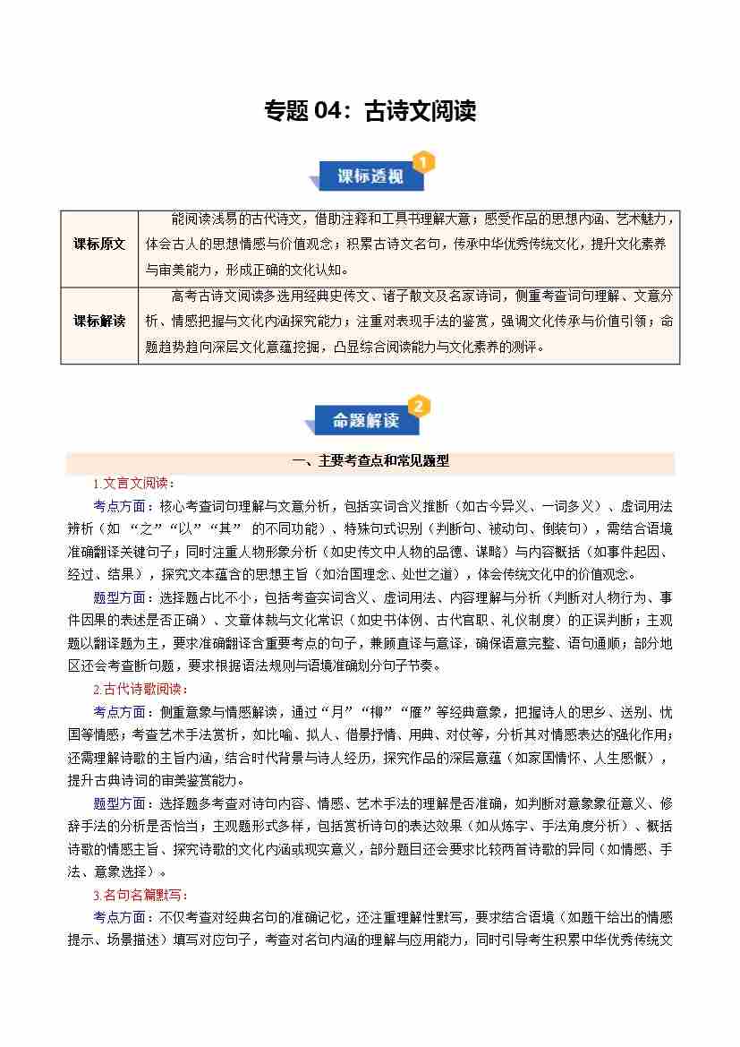 专题04 古诗文阅读(期中知识清单)