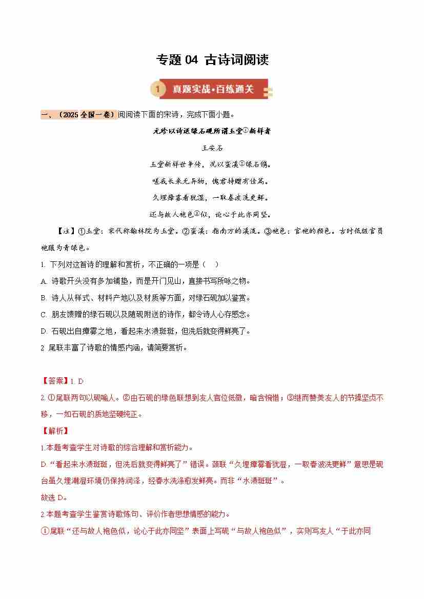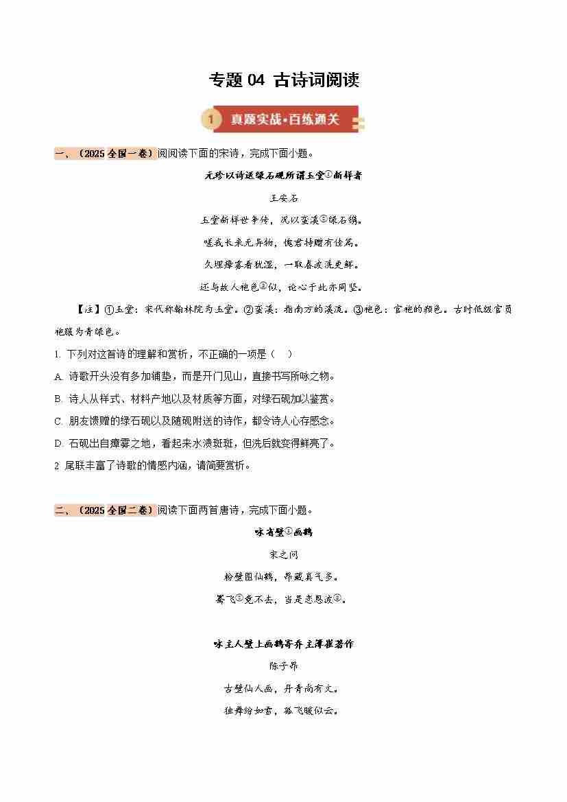 专题04 古诗词阅读(期中专项训练)(学生版)
