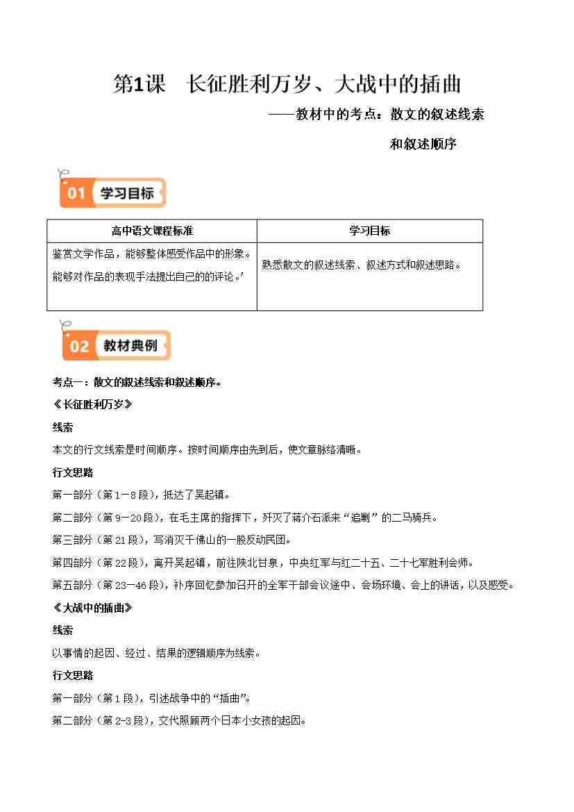 第02课 长征胜利万岁、大战中的插曲(教材中的考点:散文的叙述线索和叙述顺序)(学生版)
