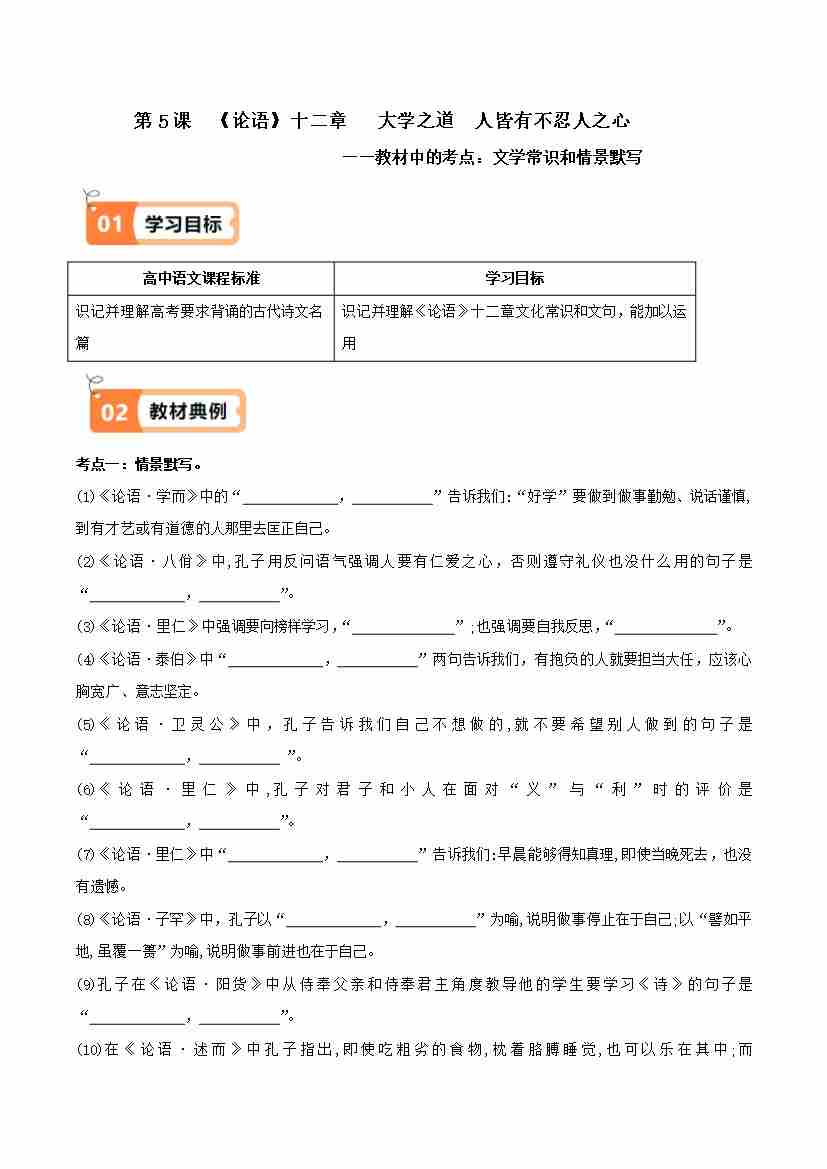第05课 教材中的考点:情景默写和文学常识(教师版)