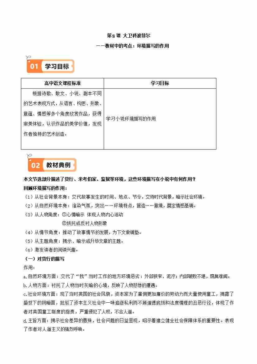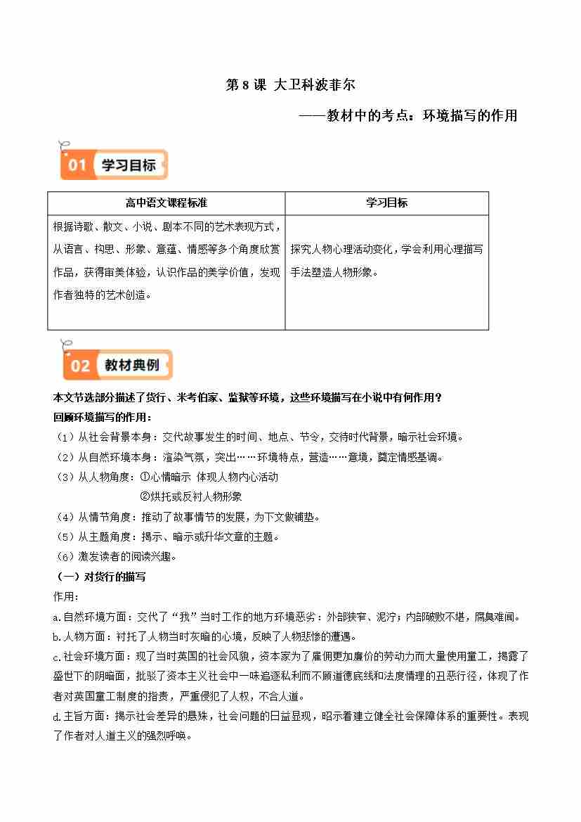 第08课 大卫科波菲尔(教材中的考点:环境描写)(学生版)