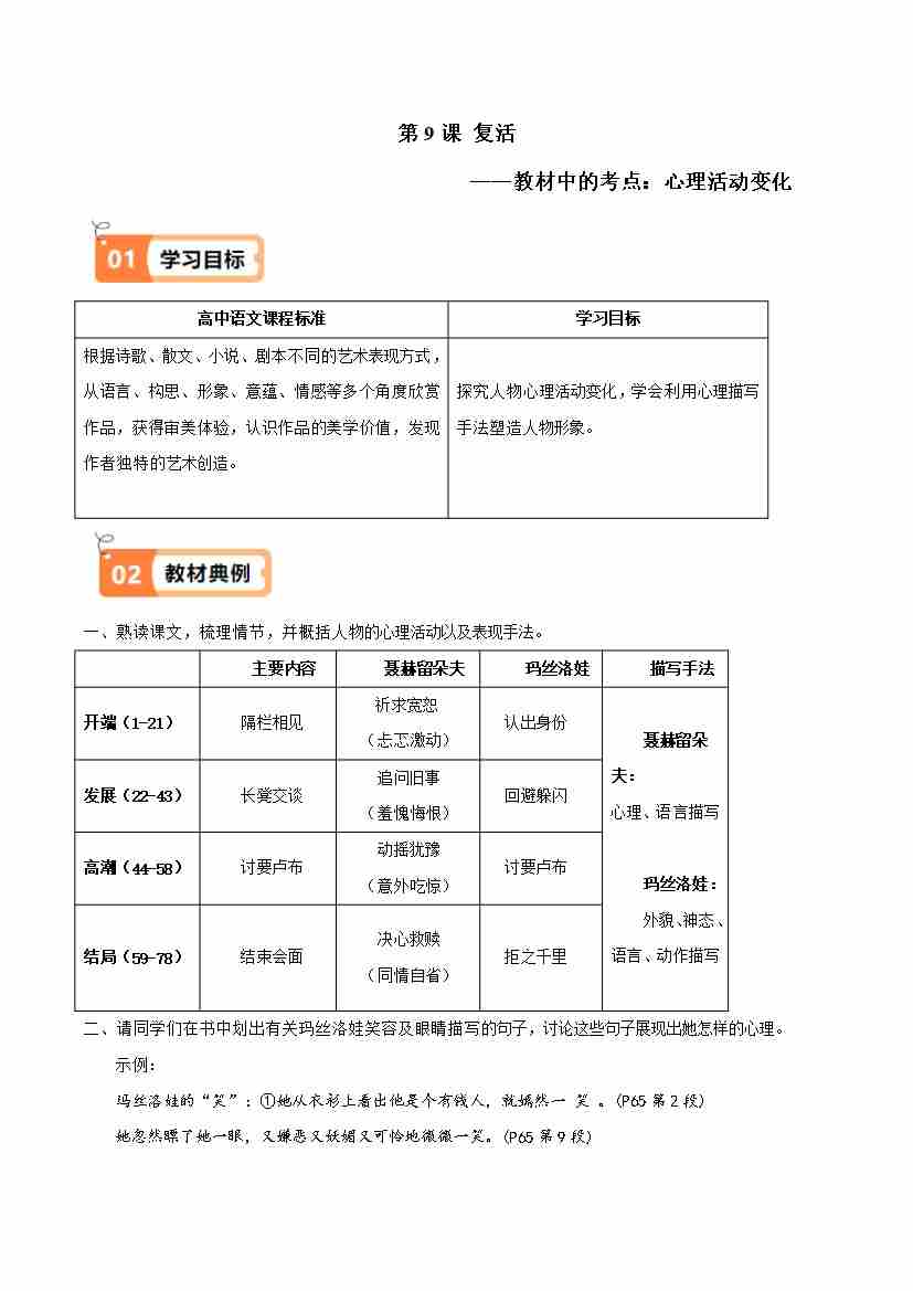 第09课 复活(教材中的考点:心理活动变化)(学生版)