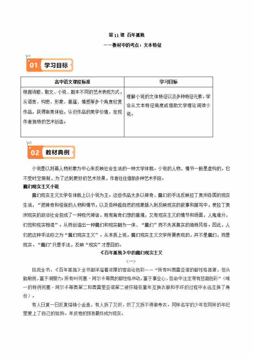 第11课 百年孤独(教材中的考点:文本特征)(学生版)