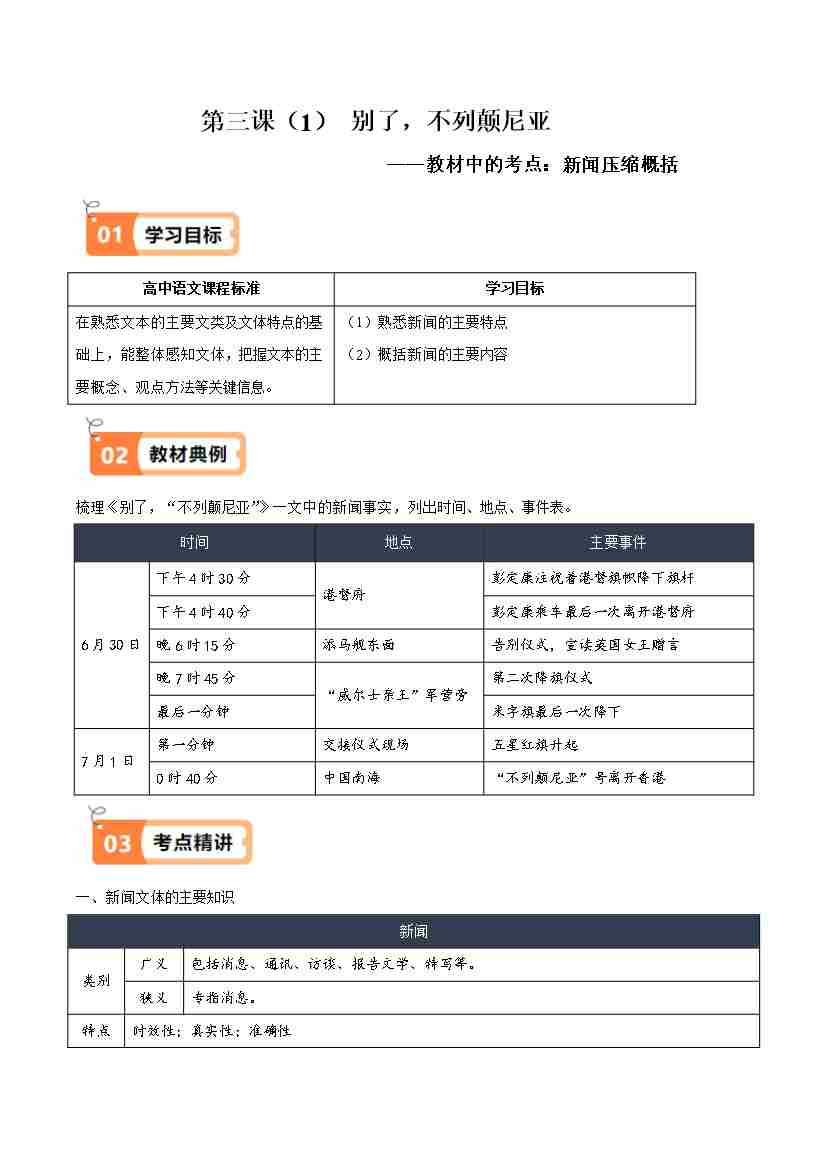 第3.1课 别了,不列颠尼亚(教材中的考点:新闻语段的压缩概括)(学生版)