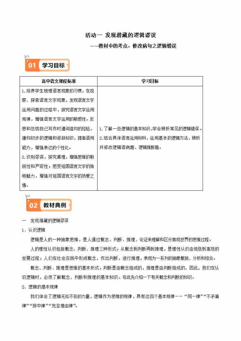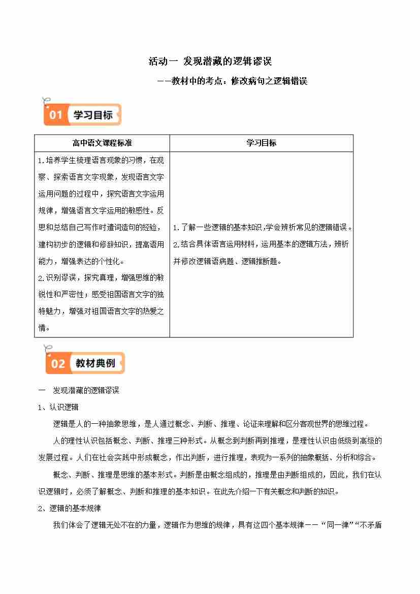 活动一 教材中的考点:修改病句之逻辑错误(学生版)