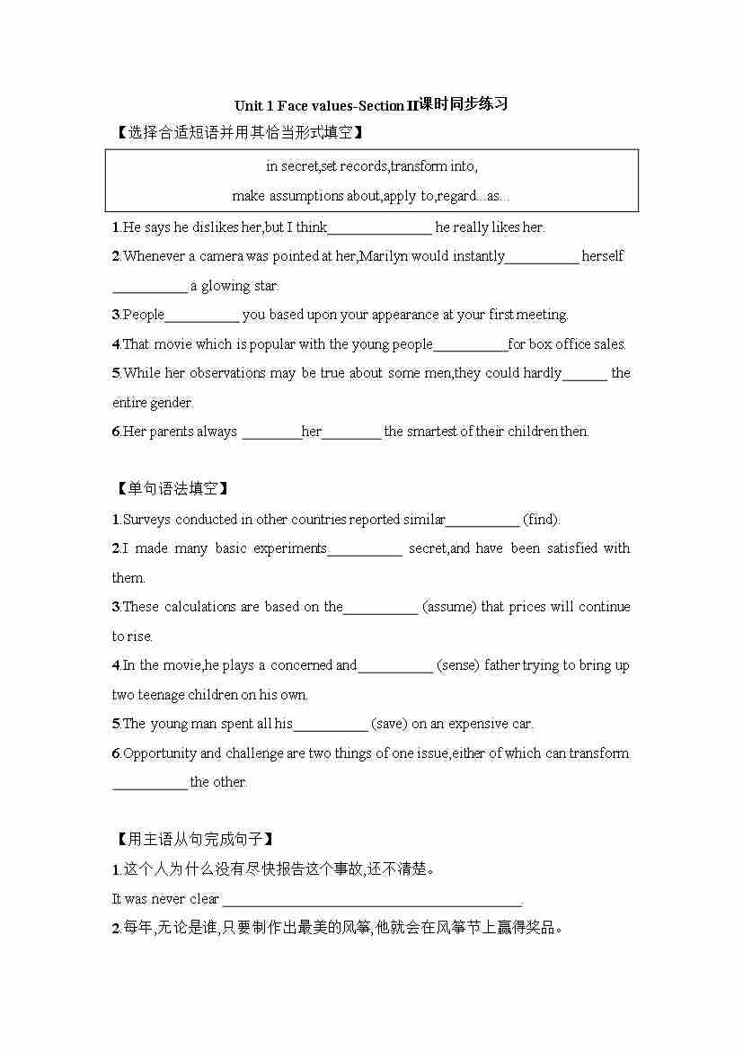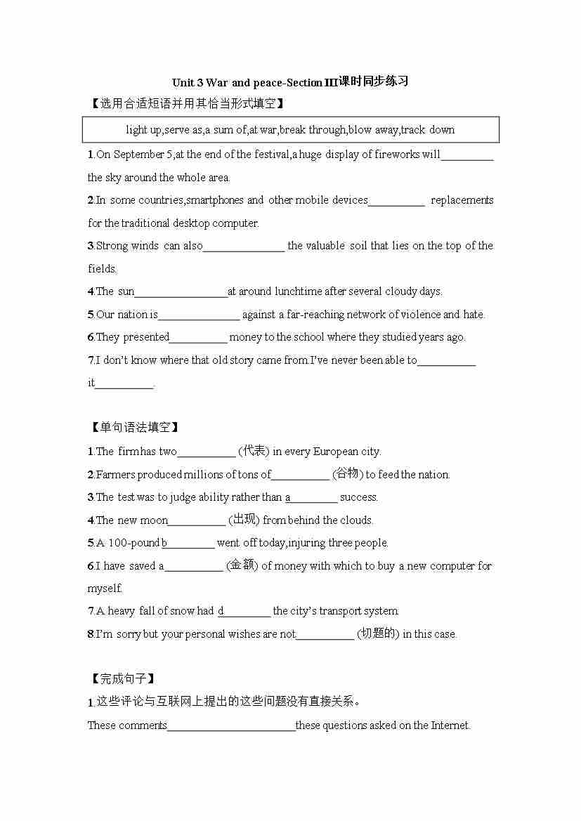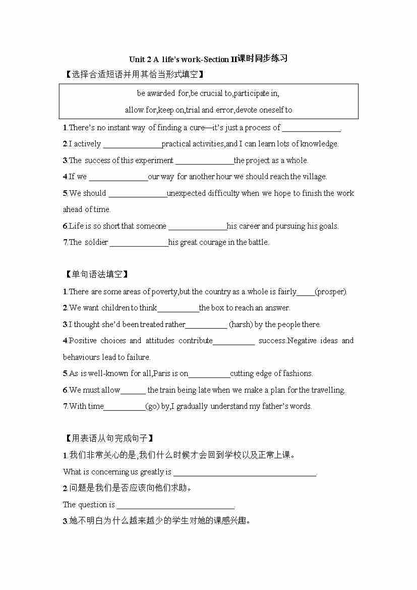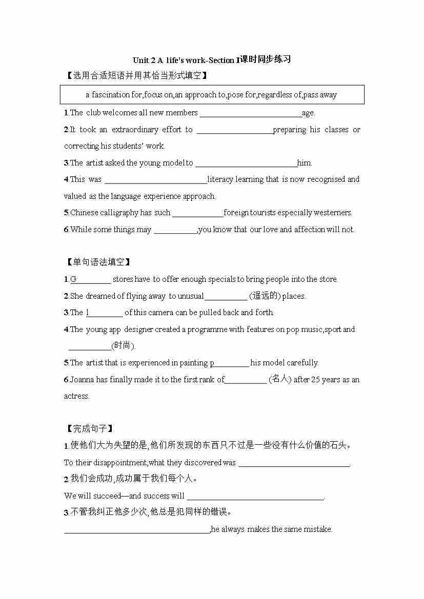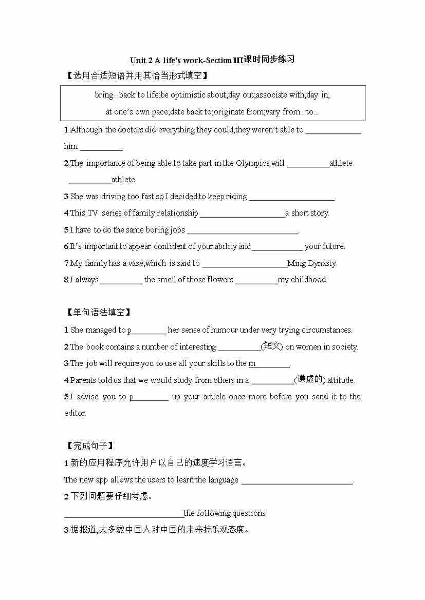 Unit 2 Using language 课时同步练习-~高中英语外研版(2019)选择性必修第三册