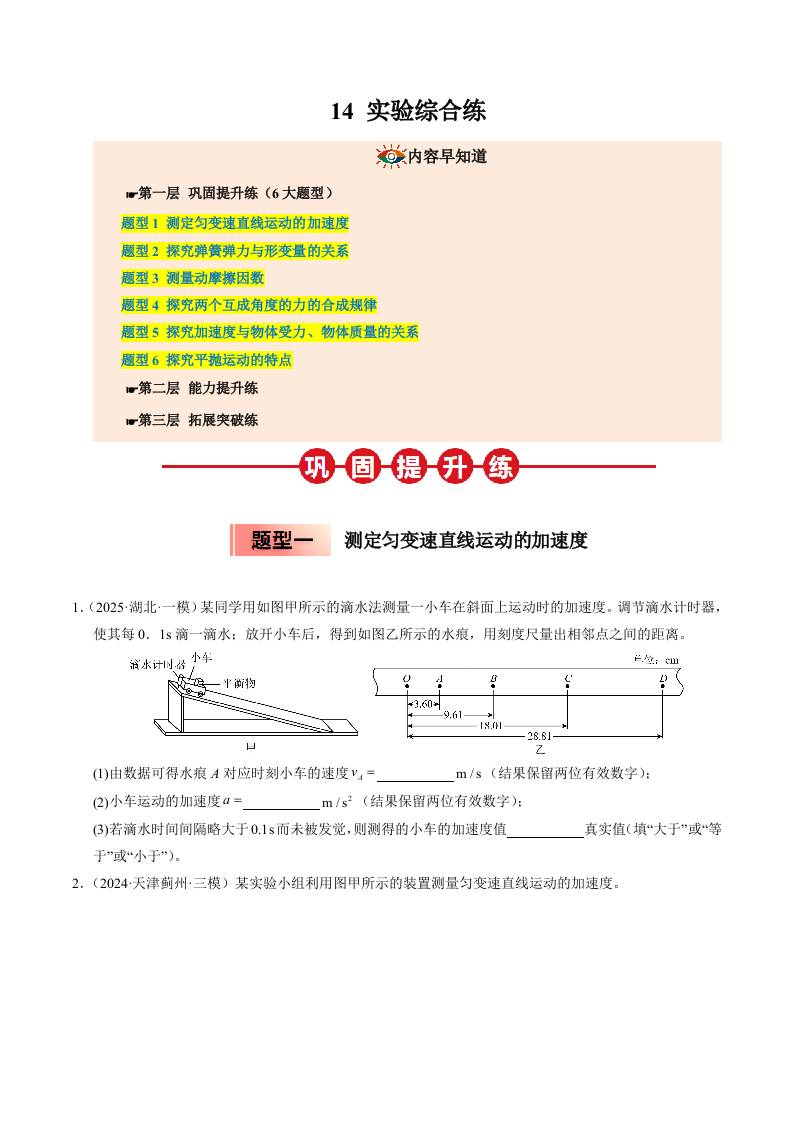 ③寒假提升练-14 实验综合练(学生版)2025年高一物理寒假衔接讲练 (人教版)