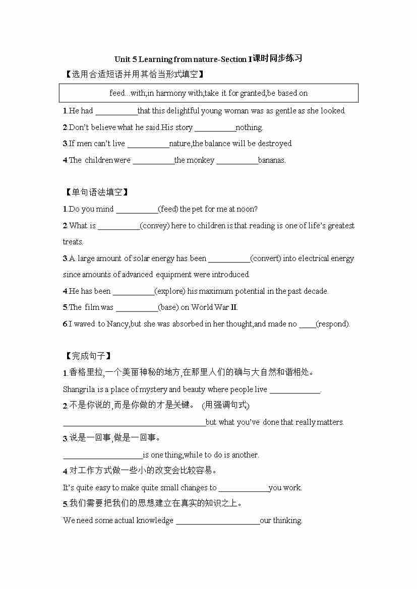 选择性必修第三册 Unit 5 Learning from nature(知识清单)(外研版2019)(学生版)