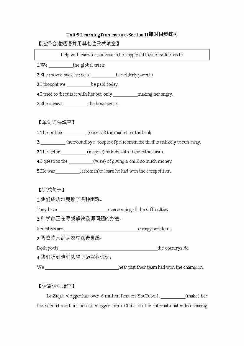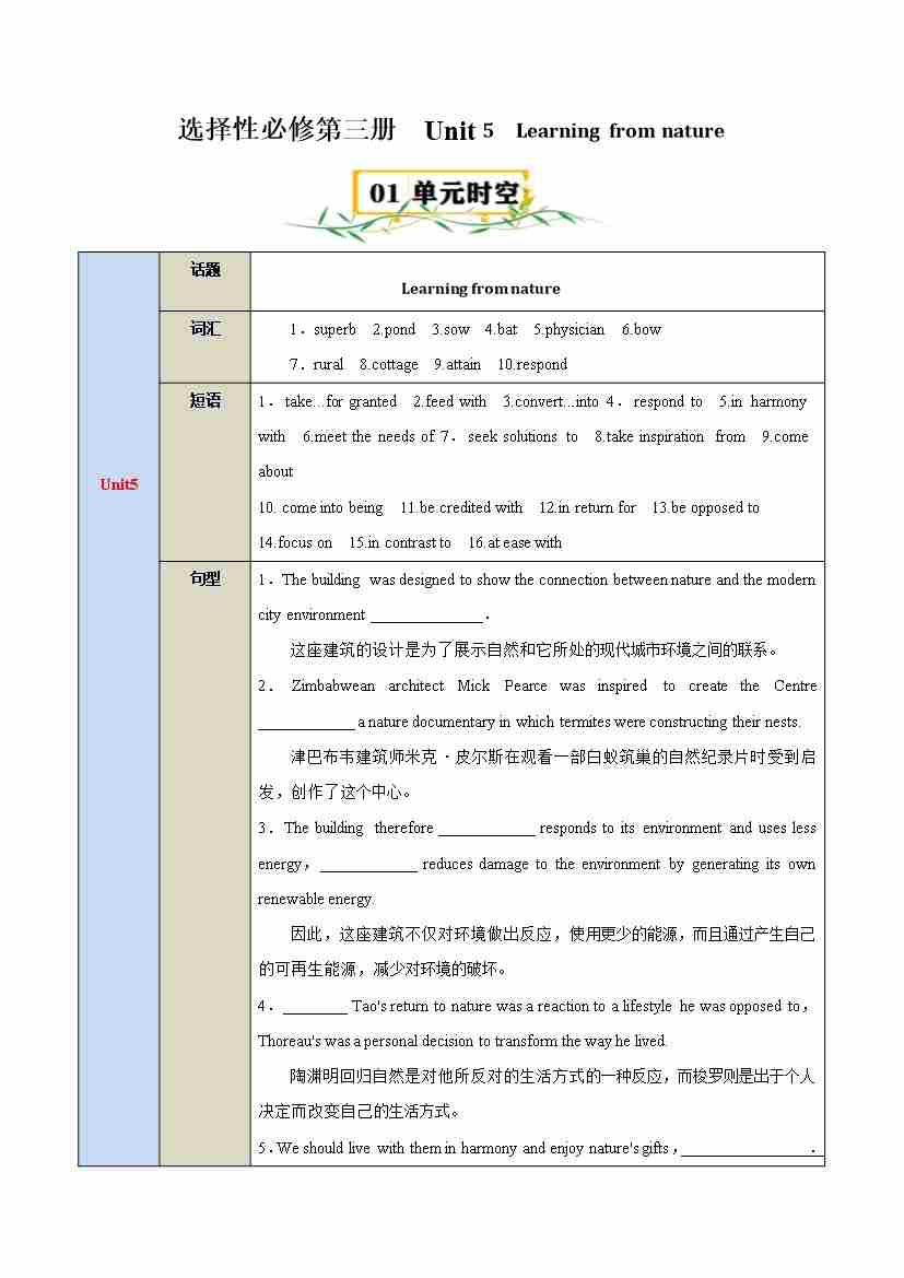 选择性必修第三册 Unit 5 Learning from nature(知识清单)(外研版2019)(教师版)