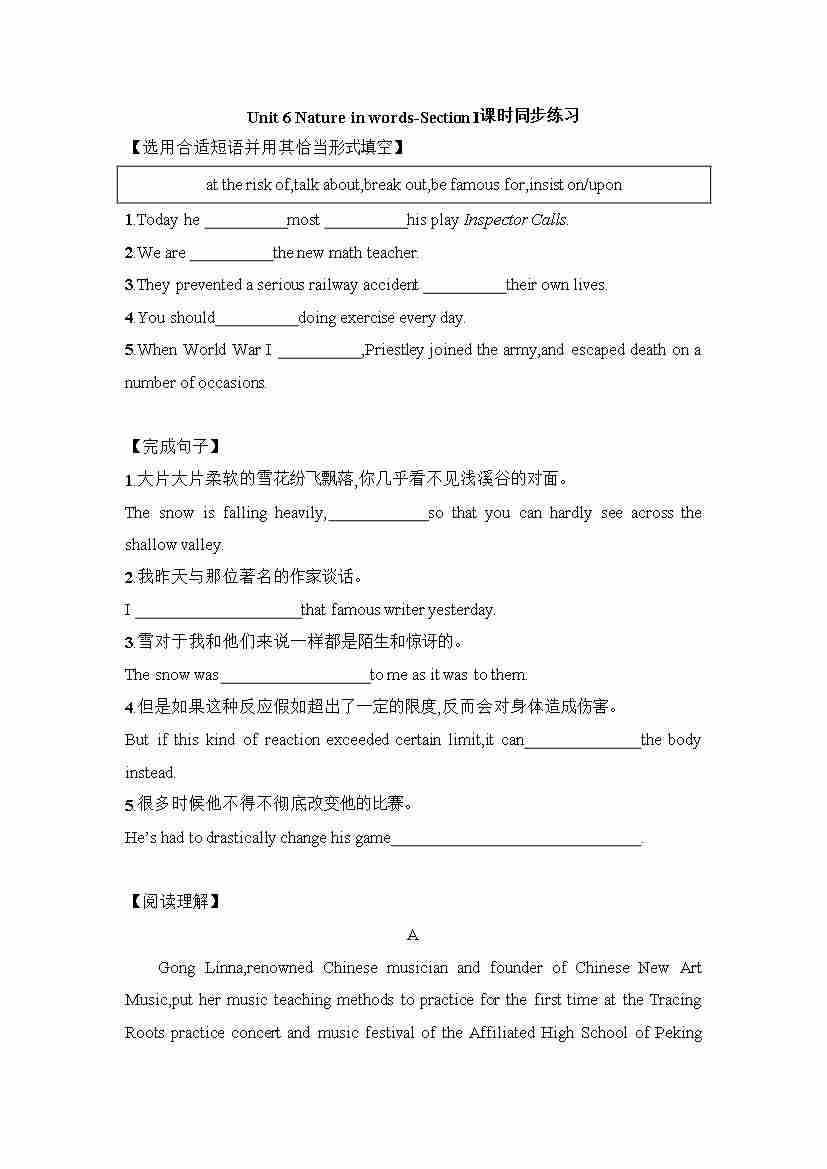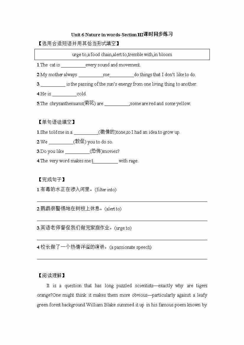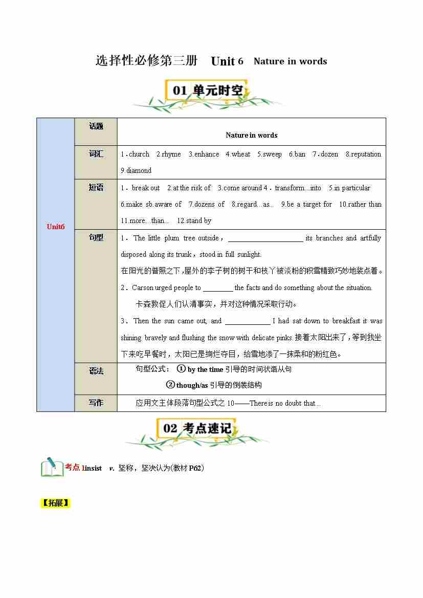 选择性必修第三册 Unit 6 Nature in words(知识清单)(外研版2019)(教师版)