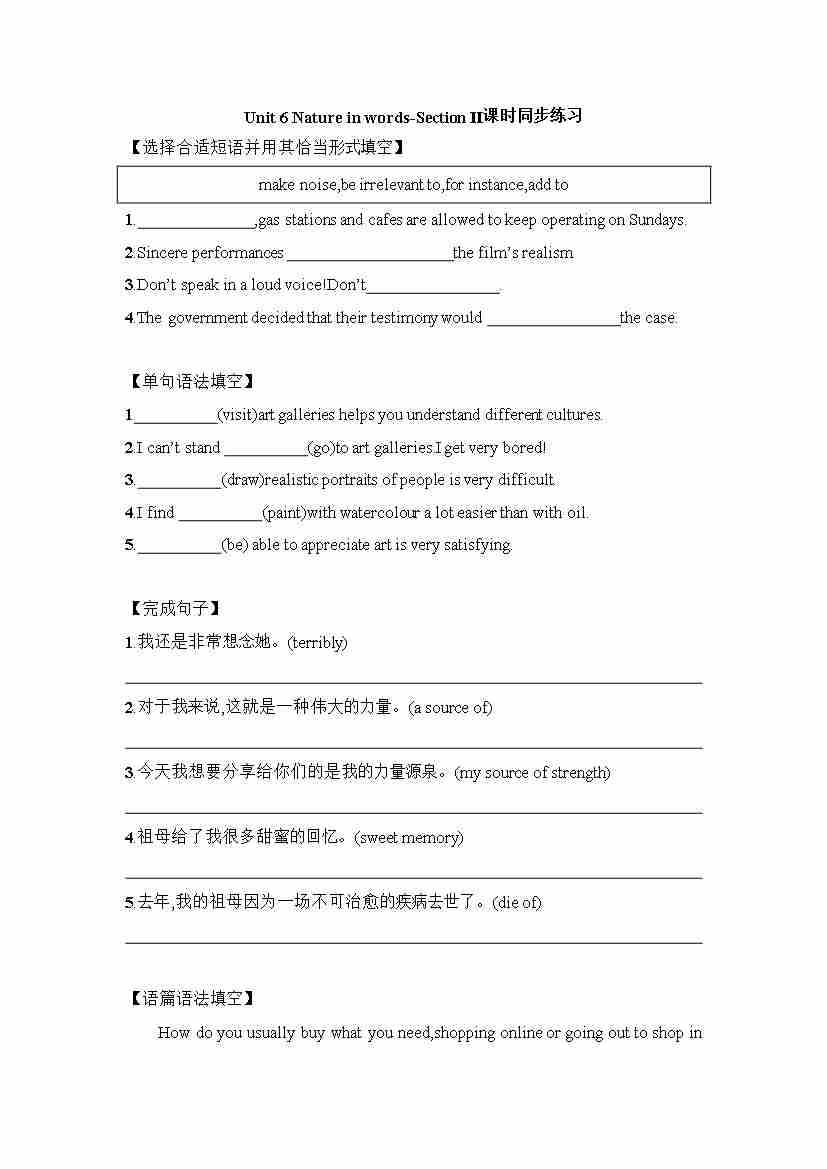 Unit 6 Using language 课时同步练习-~高中英语外研版(2019)选择性必修第三册