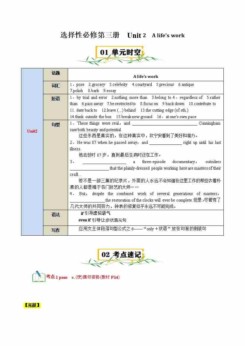选择性必修第三册 Unit 2 A life's work(知识清单)(外研版2019)(学生版)