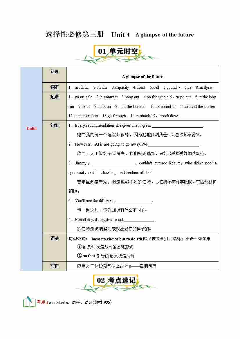 选择性必修第三册 Unit 4 A glimpse of the future(知识清单)(外研版2019)(教师版)