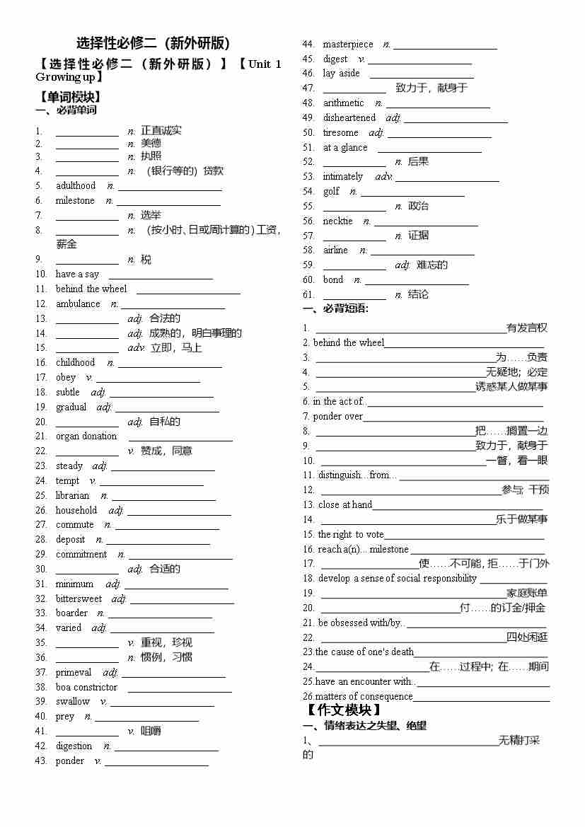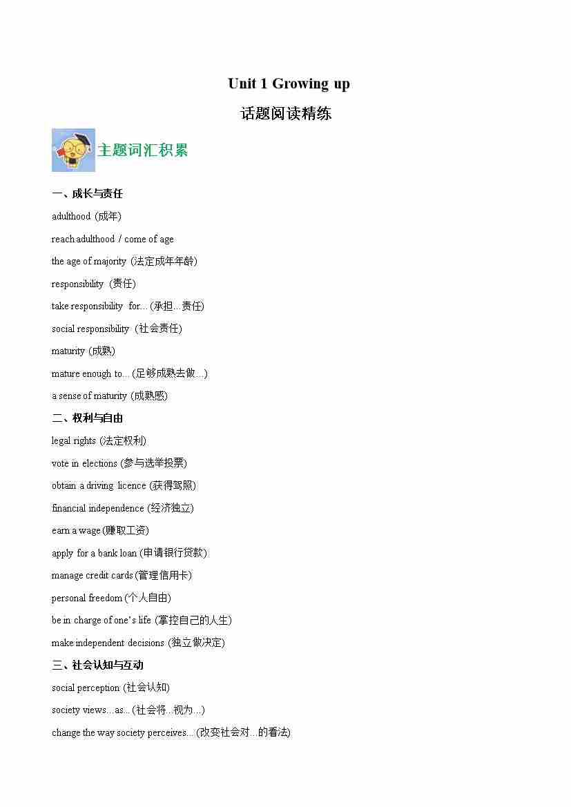 Unit 1 Growing up(话题阅读精练)(学生版)
