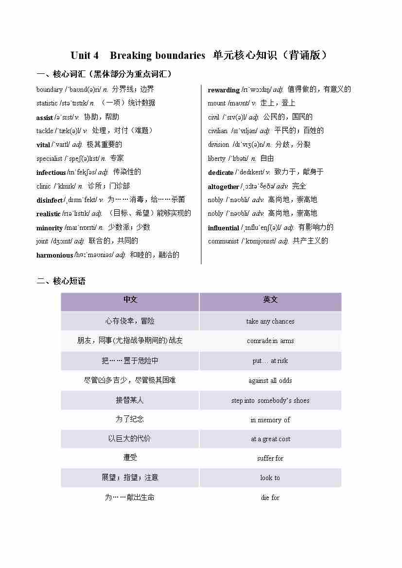 Unit 4 Breaking boundaries(单元核心知识)(背诵版)