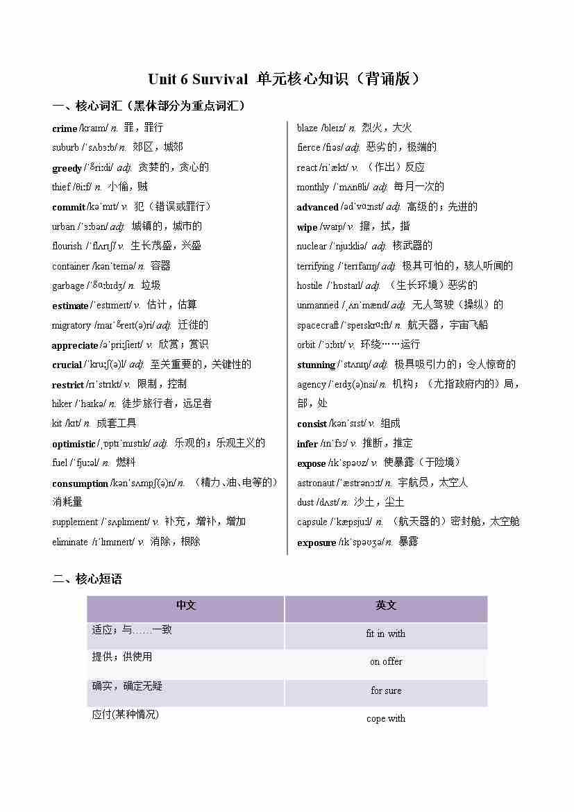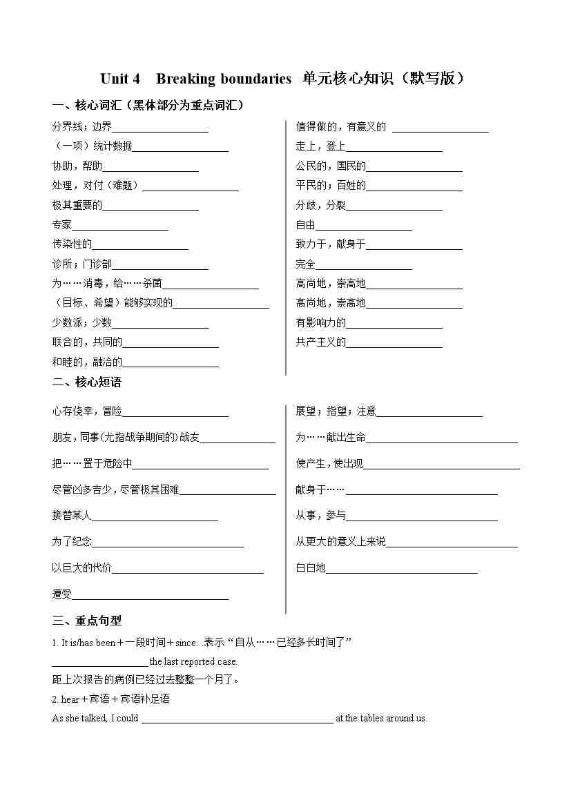 Unit 4 Breaking boundaries(单元核心知识)(默写版)