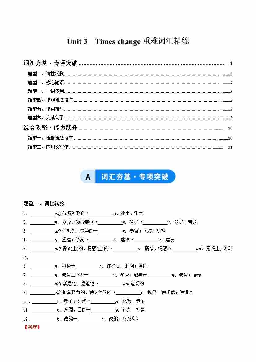 Unit 3 Times change(重难词汇精练)(教师版)